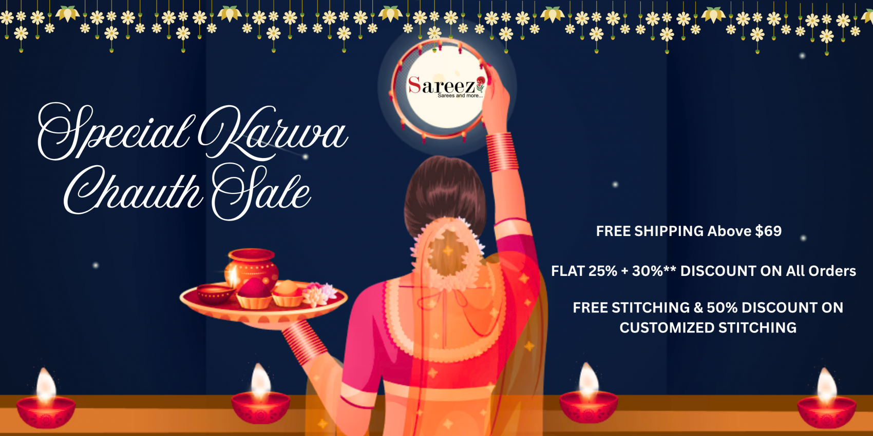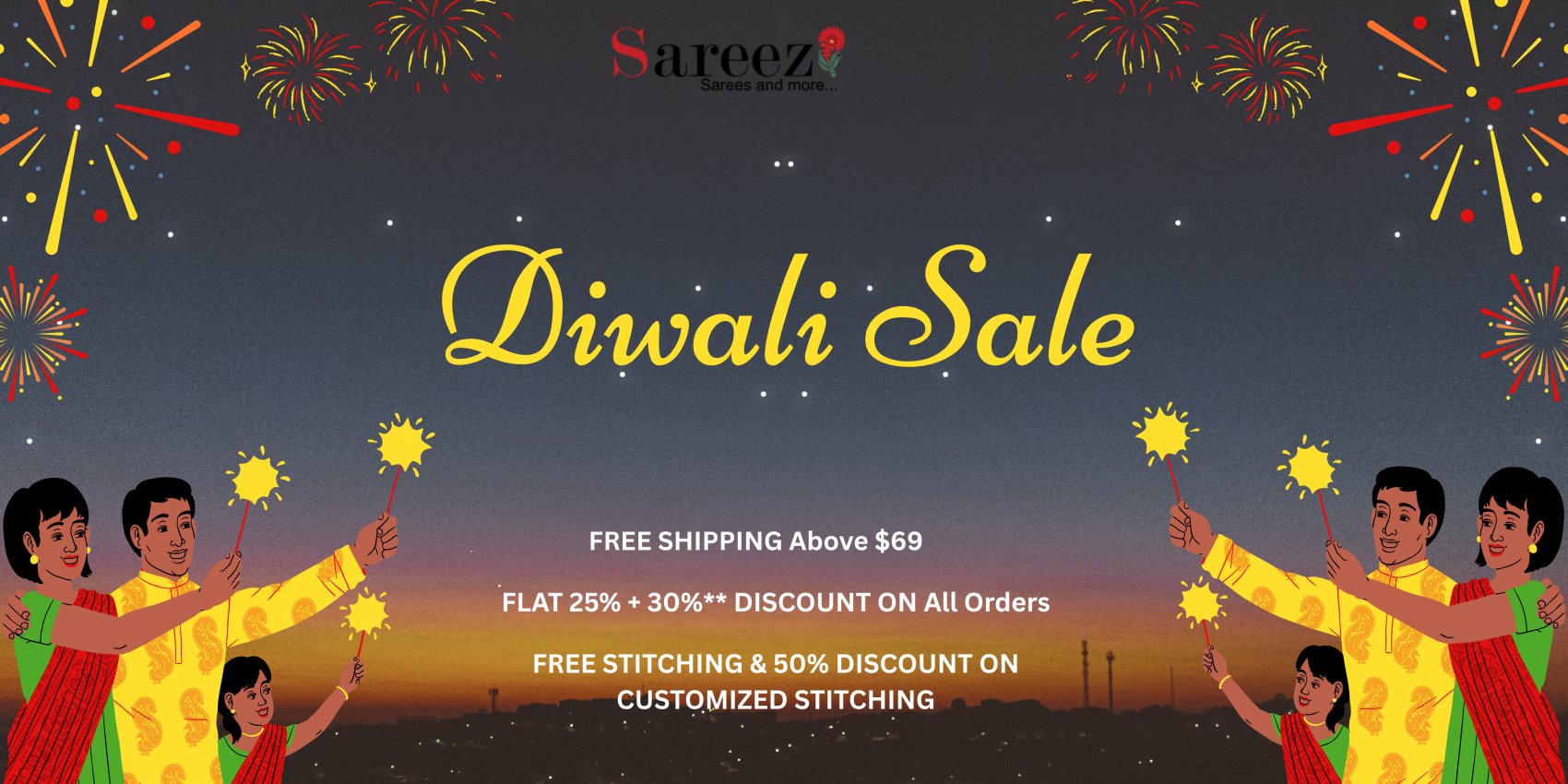 Free Stitching on Fixed Sizes** | Free Delivery on orders above USD 69 | Flat 25% Off + Extra 30% Off*