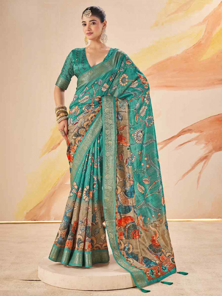 • Green Silk Printed Handwoven Traditional Bridal Reception Festival Wedding Fancy Classic Style Sarees