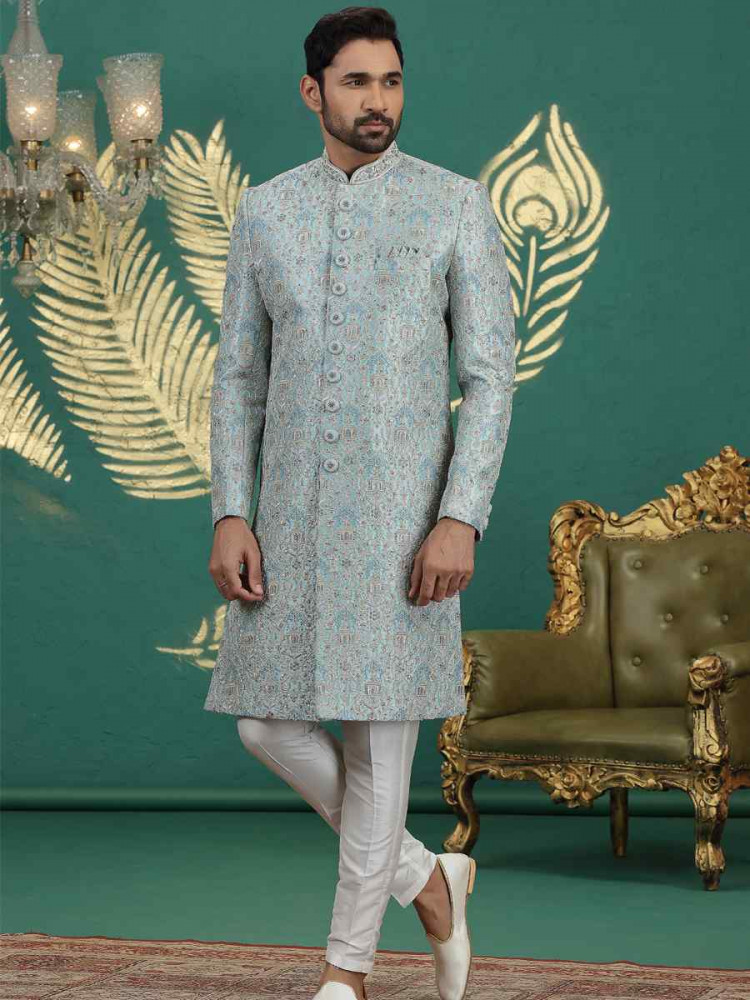 | Color | Sherwani : Light Firozi Green Bottom : Off White |