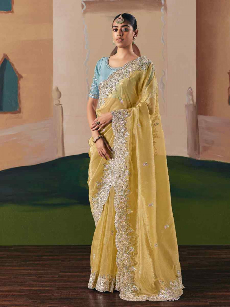 Color | Saree : Light Yellow Blouse : Sky Blue |