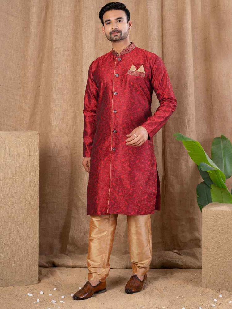 • Maroon Jacquard Embroidery Festival Wedding Party Mens Kurta