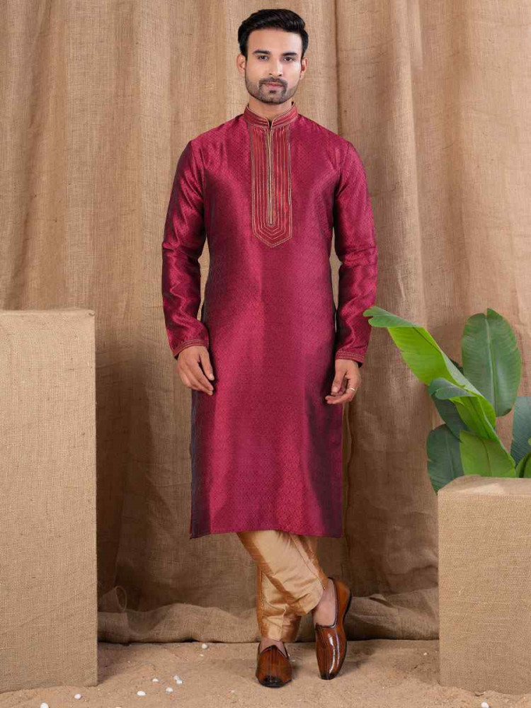 Marron Jacquard Embroidery Festival Wedding Party Mens Kurta