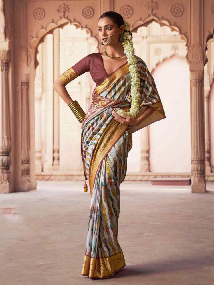 Multi Silk Printed Handwoven Bridal Reception Festival Wedding Fancy Heavy Border Saree