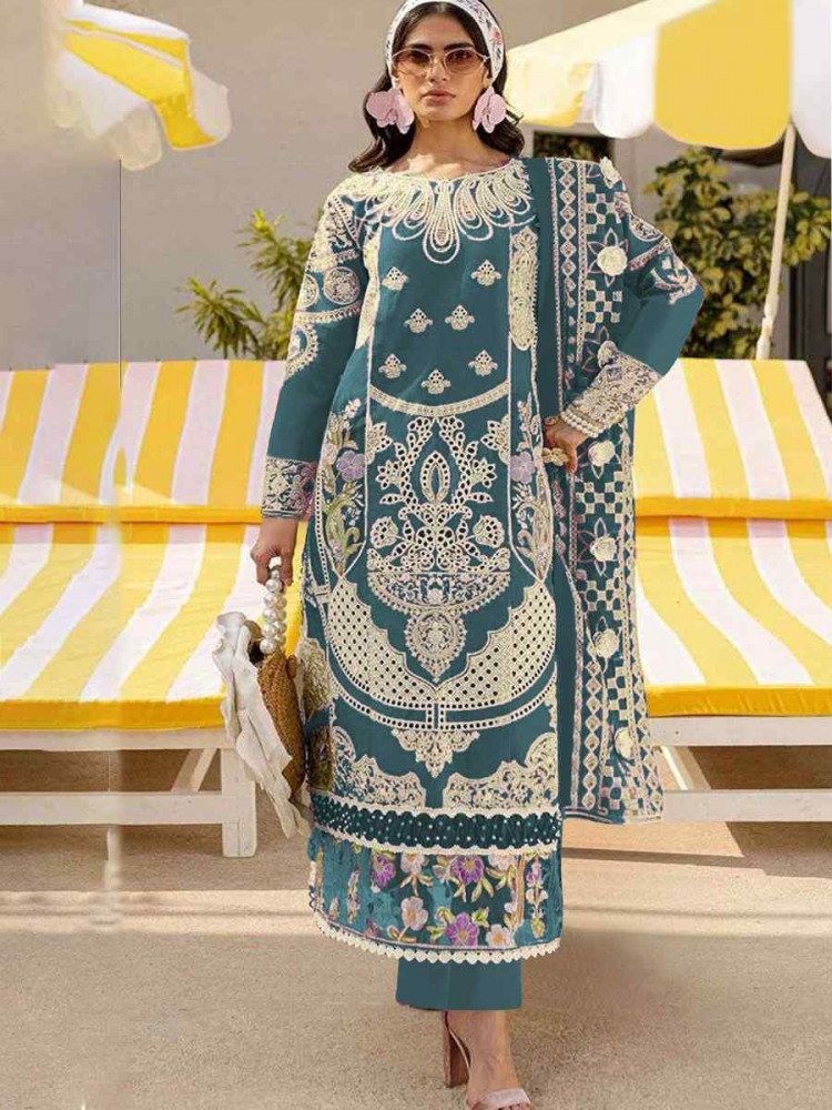 Color | Kameez : Teal Blue Bottom : Teal Blue Dupatta : Teal Blue |
