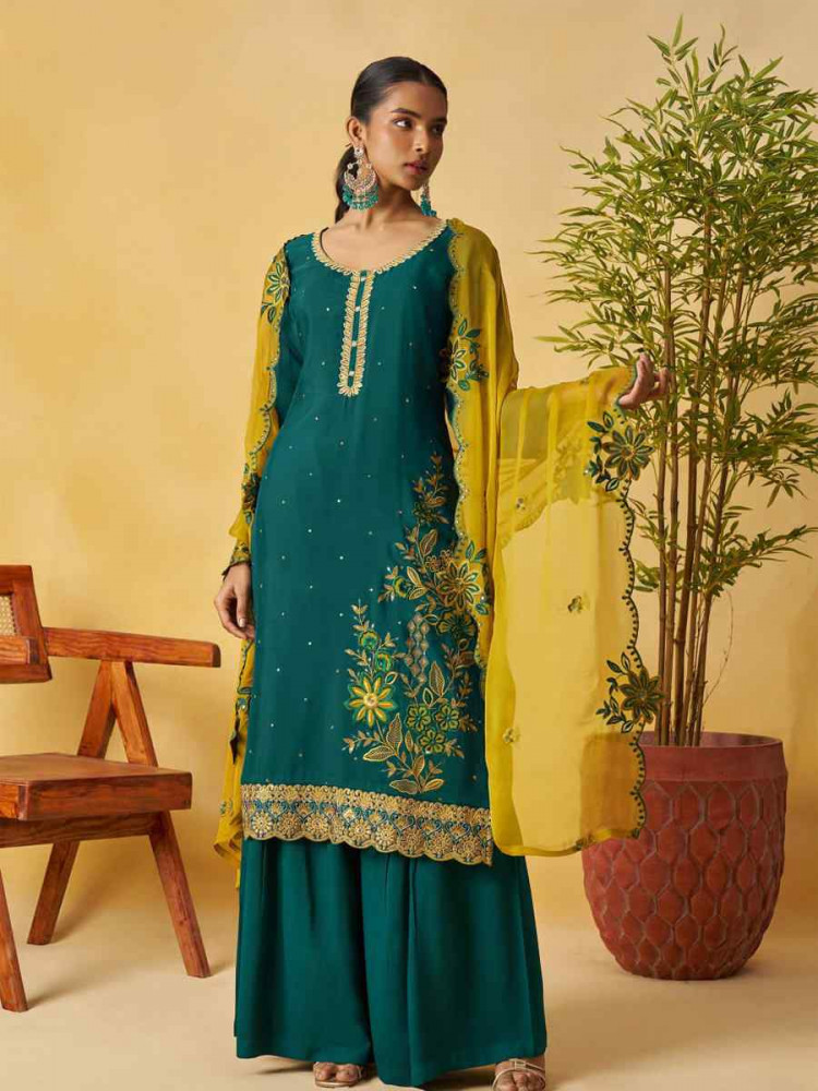 Color | Kameez : Teal Blue Bottom : Teal Blue Dupatta : Mustaed |